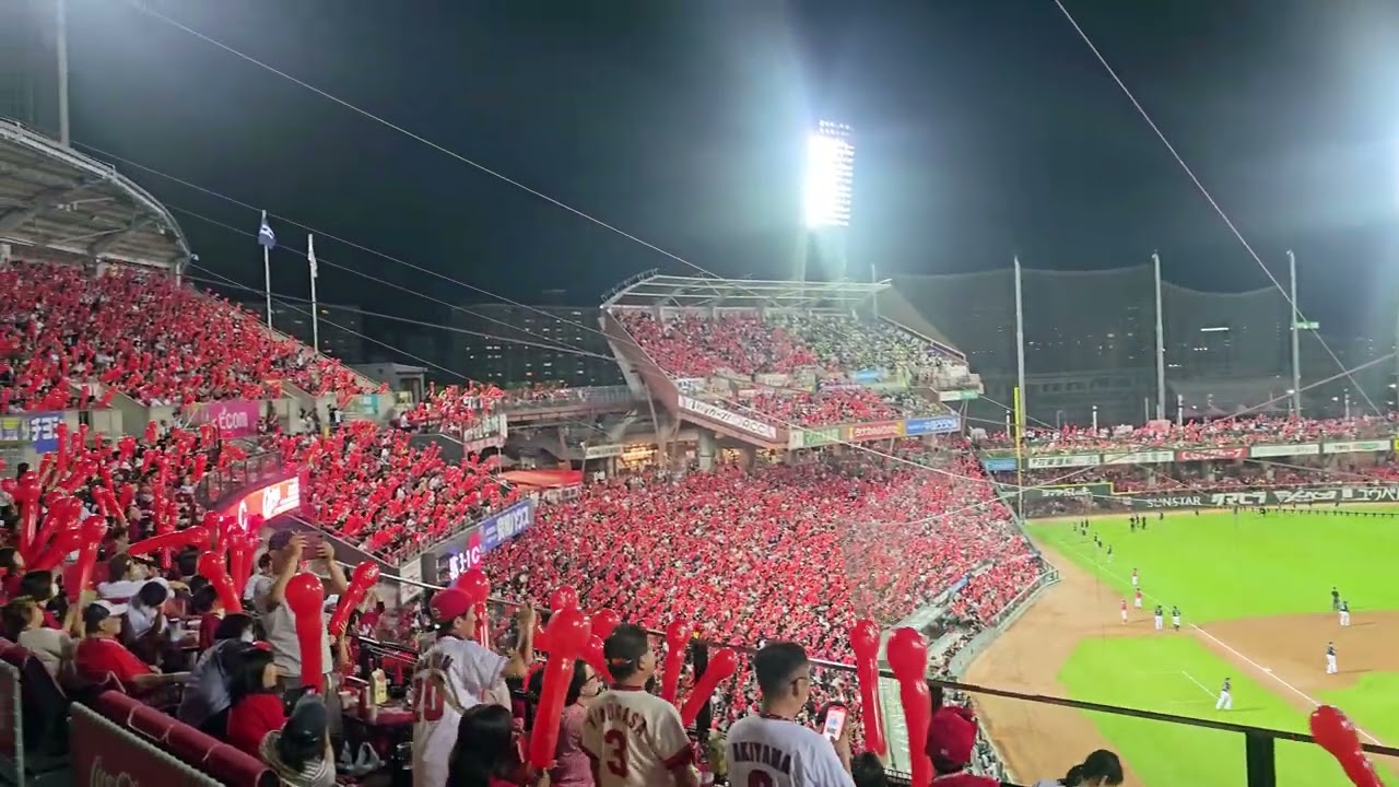 真っ赤な球場全体から響き渡る応援歌は大迫力です。