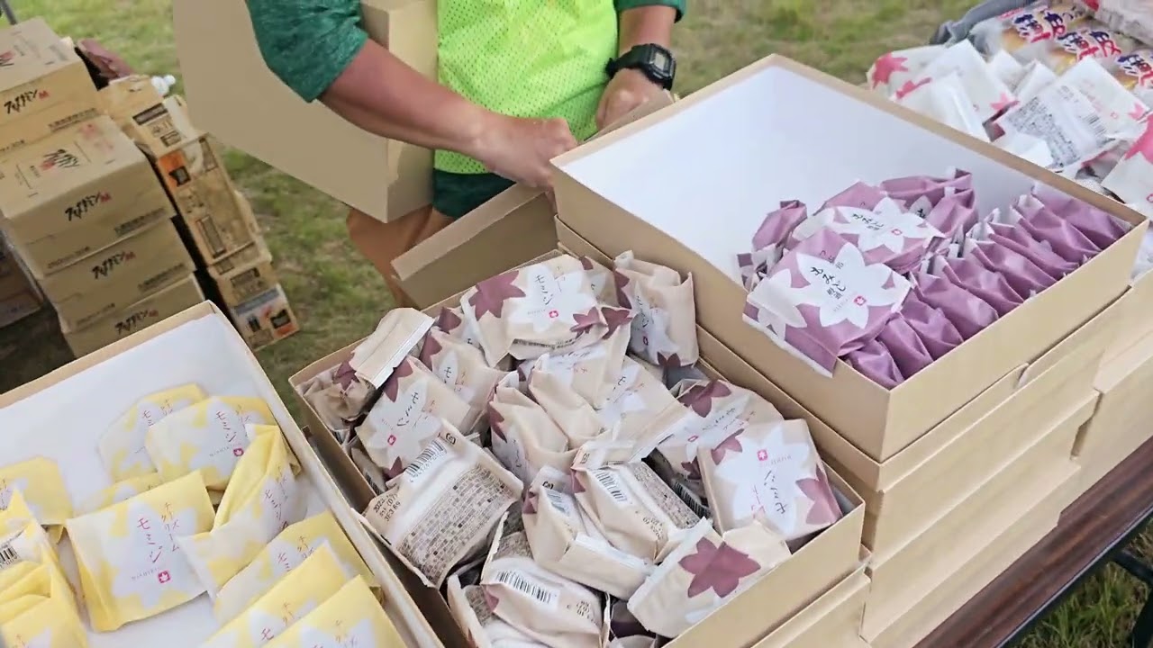 この第4エイドでは、珍しいお好み焼きたい焼きが配られました。