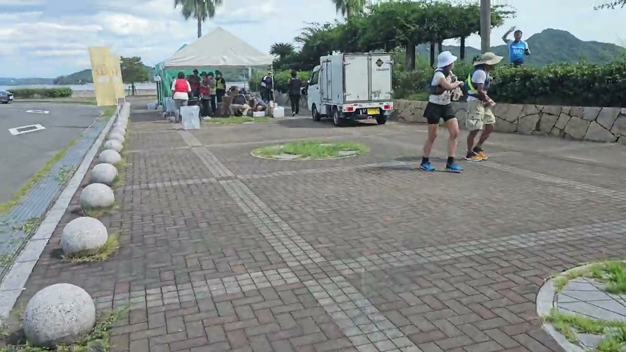 やっと最初のエイド「三原市すなみ海浜公園」に到着しました。